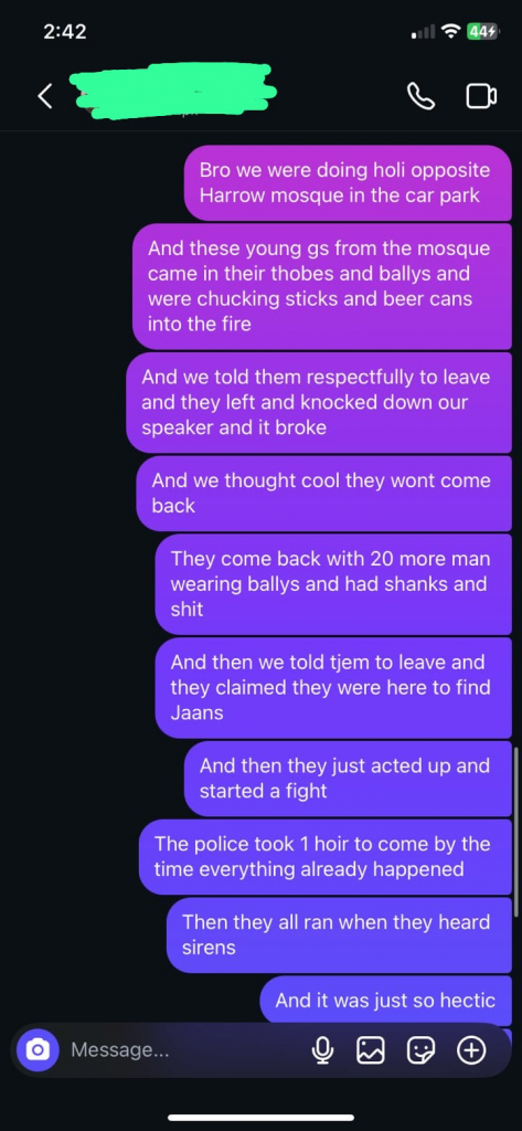 On Tuesday, 3rd March, according to eyewitness, a peaceful Holi celebration attended by hundreds of Hindu devotees in Harrow, London, was disrupted when a group of Islamist youths attacked the gathering.